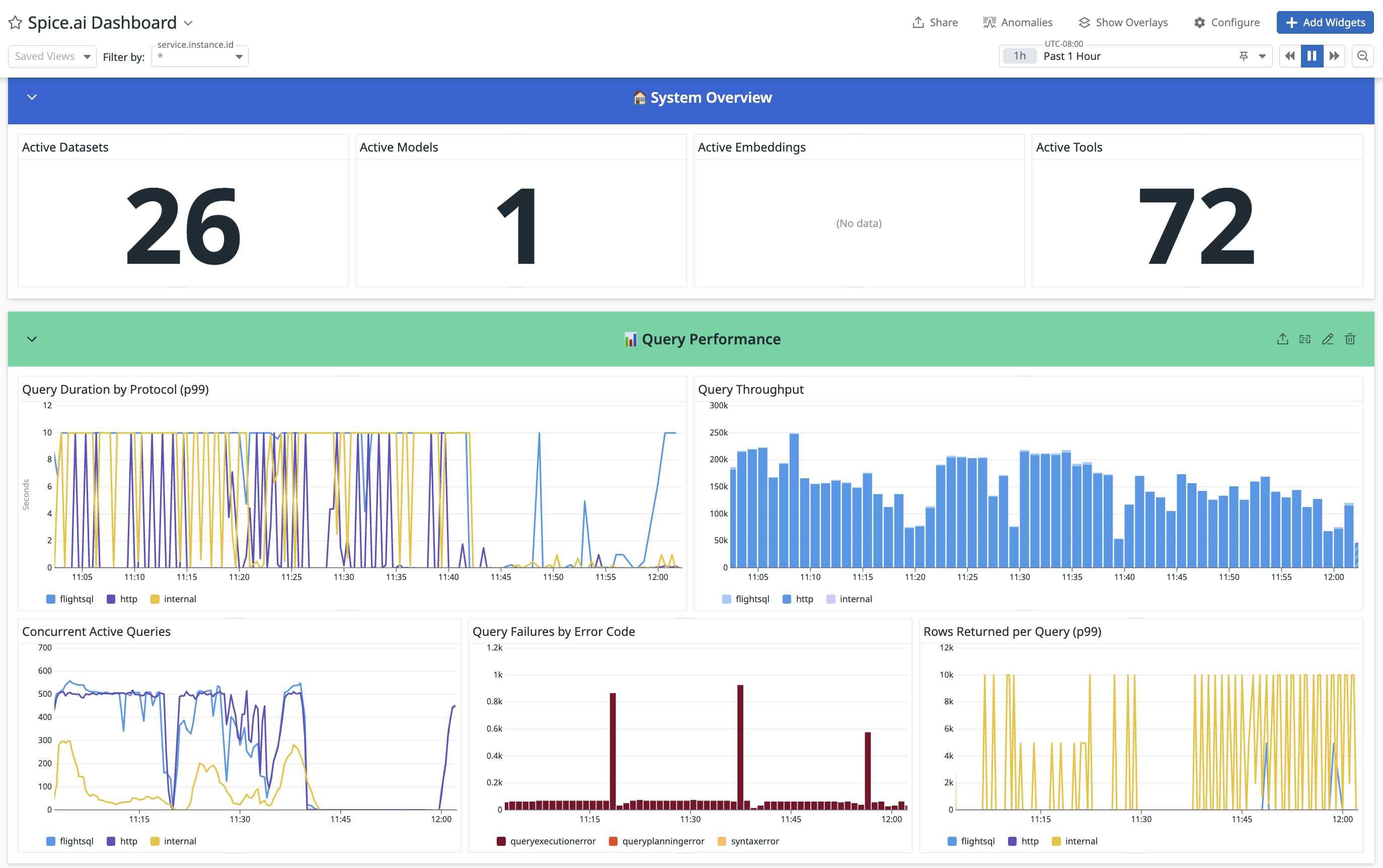 1. Dashbord is now configured to display Spice.ai OSS key performance metrics